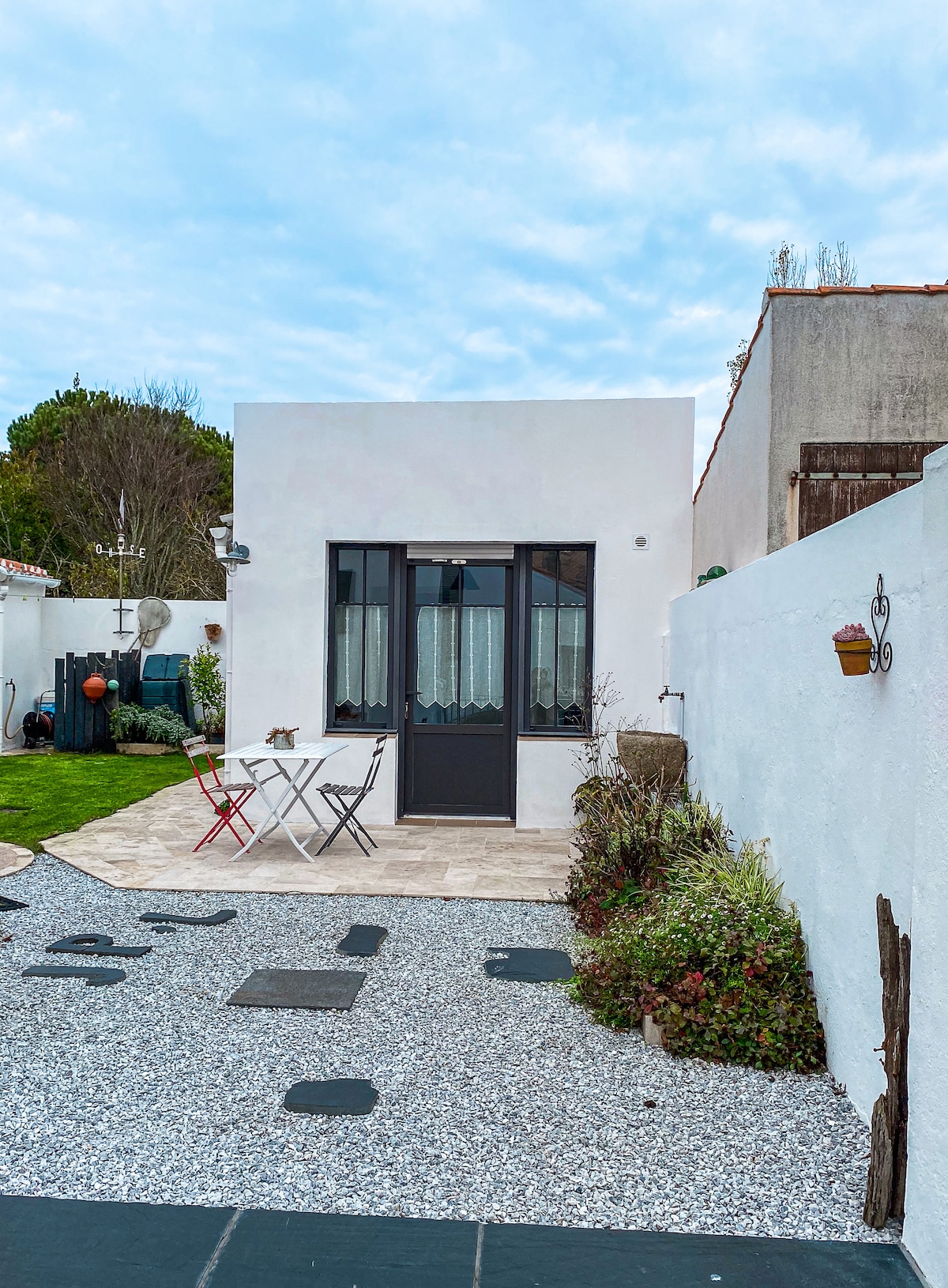 A 700m du port de St Gilles Croix de Vie , meublé indépendant de 32 m2 face à un vaste jardin arboré sans vis à vis , attenant notre propriété avec parking privé. Il se compose d'une grande chambre avec un lit ( 160 ) , d'une pièce de vie avec kitchenette équipée , TV , wifi, salle d'eau douche. Salon de jardin , transats. Tout peut se faire à pied ou en vélo (velodyssée à proximité) ,possibilité de ranger les vélos à l'abri. Vous serez à 10 mn à pieds du centre de St gilles Croix de Vie.