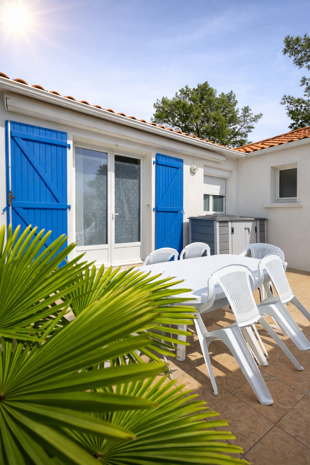 Logement classé de Tourisme Nous vous proposons une maison pleine de charme fraîchement rénovée en 2019 pour vos vacances et weekends. Elle est faite pour un séjour en famille ou entre amis. Votre animal de compagnie est aussi le bienvenu car le terrain est entièrement clos. Elle est idéalement située face à la forêt, à 300 mètres de la plage et 150 mètres des commerces. Notre Dame de Monts est à 15 km de l'île de Noirmoutier, 15 km embarcadère pour l’île d'Yeu, 30 de St Gilles Croix de Vie