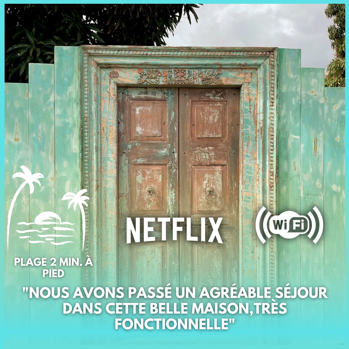 La Palma Villa vous accueille dans un lieu calme et chaleureux à 2mn à pied de la plage et à 10 mn du centre ville. Ses atouts forts: une deuxième cuisine extérieure donnant sur une jolie varangue avec piscine et jardin arboré. With its calm and friendly vibe, you are welcomed at La Palma Villa, situated two minutes by foot from the beach and ten minutes from the city center. The villa main feature is its external kitchen connected to a nice patio with a salt water pool and a quiet garden.