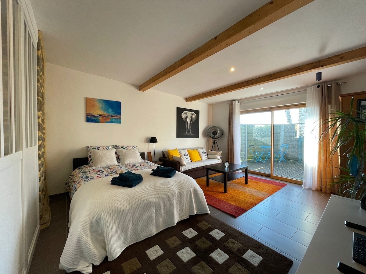 This is an old outbuilding where cider was made, completely renovated on 36m2 on the ground with a floating mezzanine floor. The accommodation is independent and offers all the modern comforts of a current home with all the useful equipment. The private park of more than 5000m2 is accessible to travelers who can also go see the goats and sheep in their enclosure.