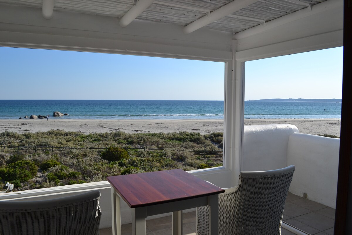 A small coastal cottage roughly 5 min drive outside the harbour town of Saldanha. The cottage is private but connects to the side of our home. It is literally on the ocean with spectacular views of the bay and harbour boasting 3km of sandy beach, stretching in either direction. The bedrooms are north facing, catching mid day sun. The cottage falls with in a small private home owners estate, is secure and quaint and is perfect for those wanting to spend their days lazing on the beach.