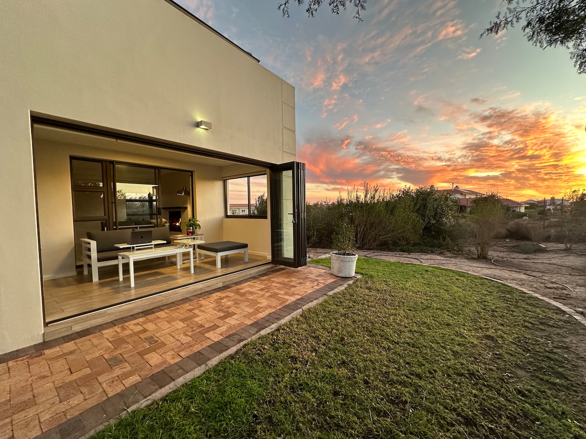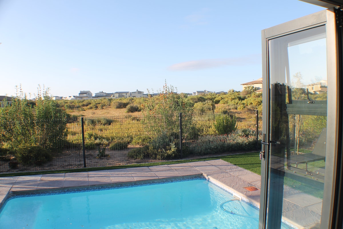 Cozy Home surrounded by wildlife and incredible sunsets situated on prestigious 450 Hectare 18-Hole Golf Course. Springboks, Blesbokke and Flamingos surround the home. Enjoy 80km of bike tracks, hiking routes, a pool, putt-putt and restaurants worry free with 24/7 security on the Estate. A quick drive from the beach and shops. Ideal for remote working with 300mbps fibre internet and dedicated working spaces. Plenty of play parks for families to enjoy and pump track for adventure seekers.