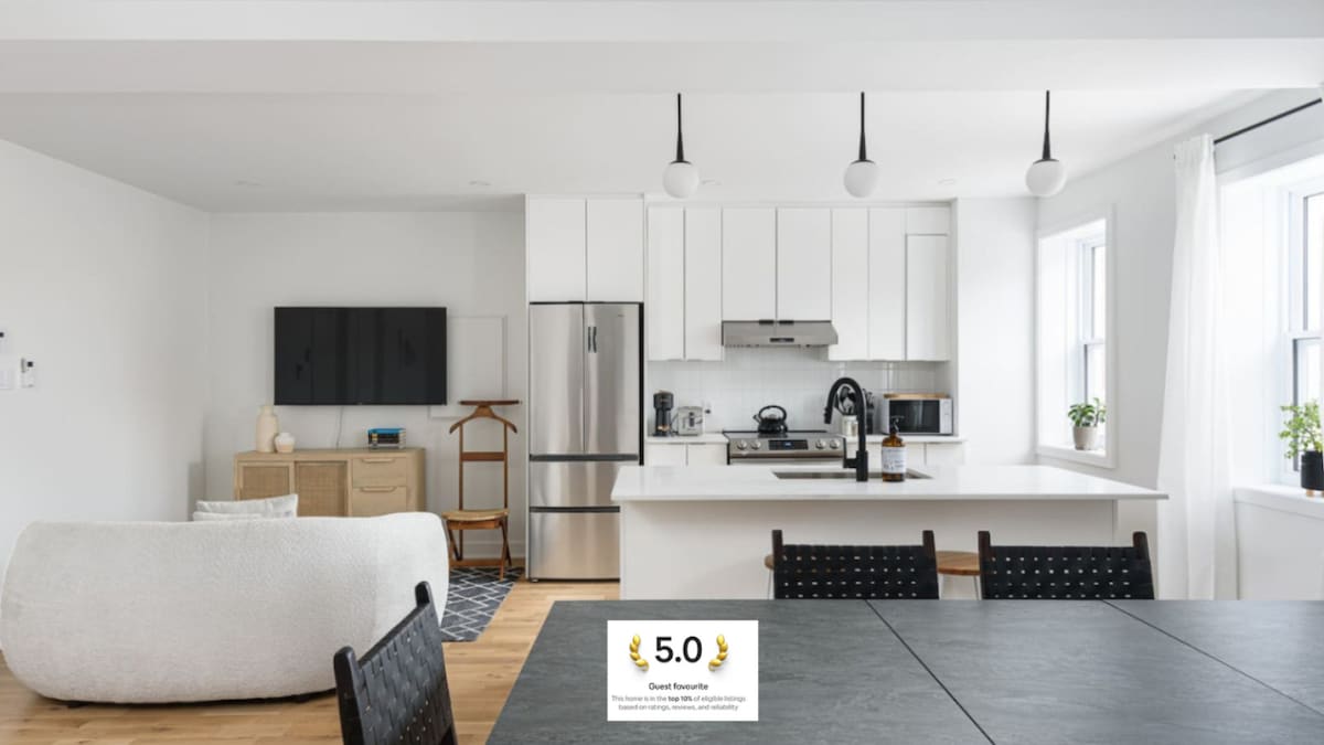Welcome to your stylish home in the heart of downtown Montreal! This bright and spacious apartment is designed for comfort and convenience. What you’ll love: • Comfy queen bed + extra sofa bed for flexible sleeping arrangements • Fully equipped kitchen for home-cooked meal • Fast Wi-Fi and Smart TV for relaxing nights in Location highlights: • 2-minute walk to Concordia University • Close to Atwater Market & Sainte-Catherine Street • Easy access to metro stations and public transport
