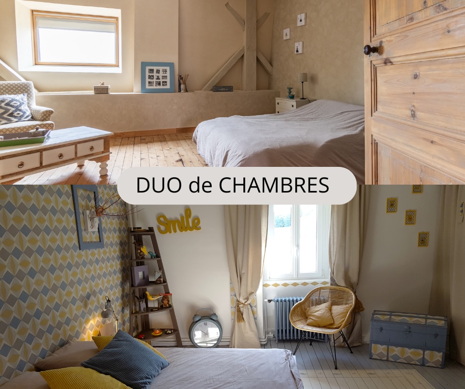 Ensemble de 4 chambres au calmes, claires et confortables, au 1er étage d'une maison ancienne rénovée. 2 sont avec lits doubles (140) et 2 autres avec lits simples (100). Avec salle de Bain et WC séparés réservés aux seuls locataires. Meublées et équipées. Accès cuisine équipée. Idéalement située à 13 min du centre (Arrêt tram 300m). WiFi, coin bureau, nombreux rangement, penderie, couette, oreillers, linge de toilette, lave-linge, lave-vaisselle, mini frigo personnel (option +0,5€/j)