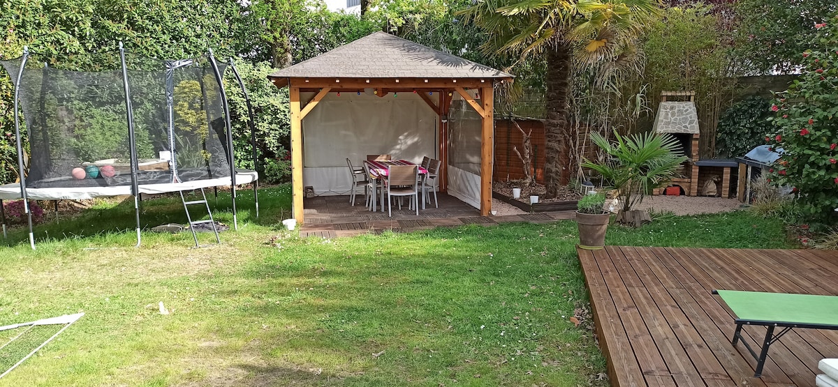 Vous apprécierez votre séjour dans ce logement plein de gaité, esprit bohême. SDB à partager avec autres voyageurs. Parking gratuit. Chambre à l'étage. Ouest. Rue tranquille. 2mn de la forêt , 5 mn hôpital Laënnec, 10 mn Zenith, 20 mn aéroport, 20 mn centre Nantes, 45 mn mer, 2 mn périphérique. Bus 89. Lit 140. Sur demande lit parapluie. Linge de maison et serviettes fournis. Café, thé, bouilloire ds la chambre. Accès micro ondes dans notre cuisine