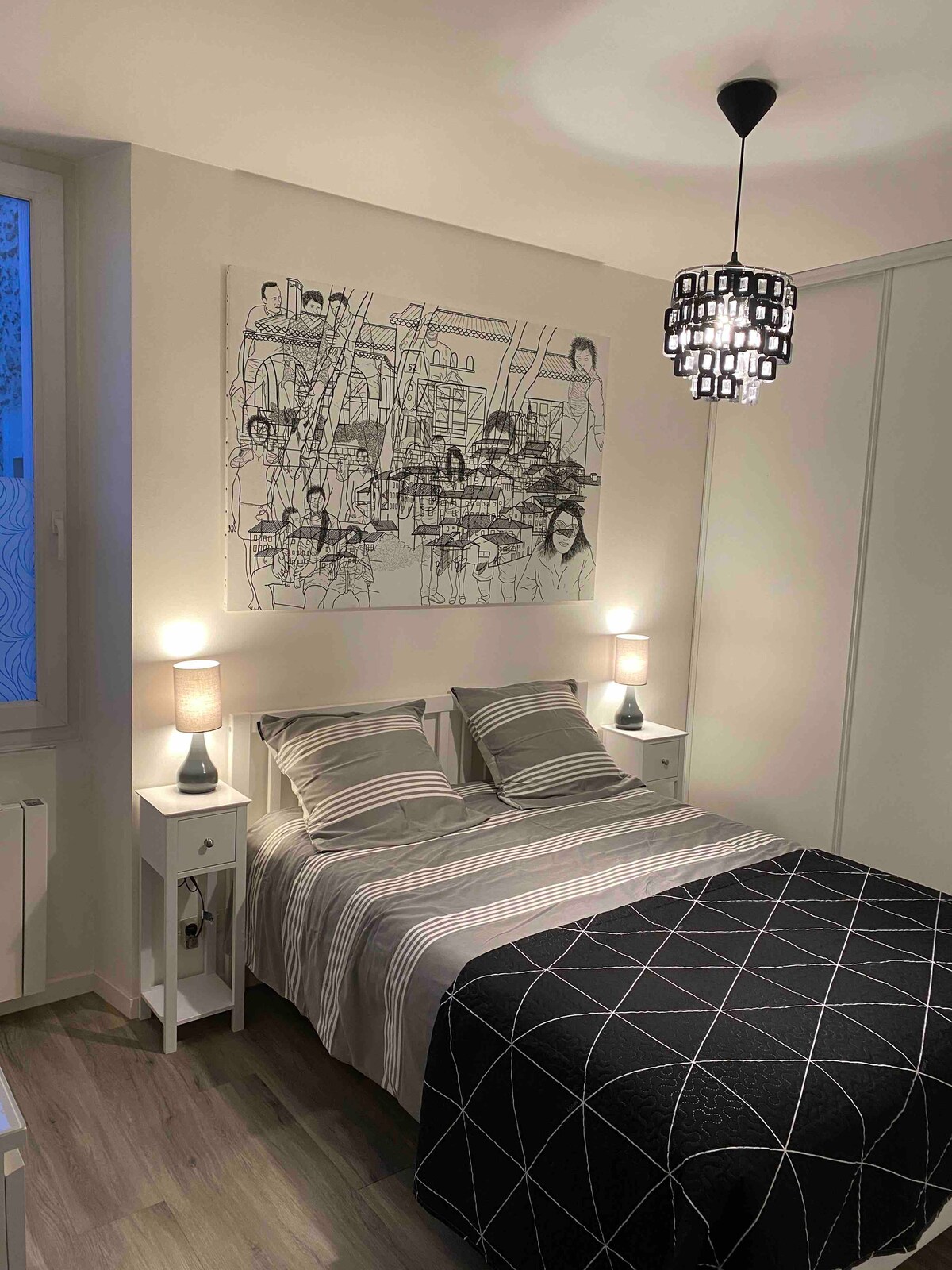 Logement 2 pièces : cuisine, chambre avec lavabo indépendant en rez de chaussé de mon logement et salle de bain personnelle (douche/baignoire ) attenante à l'appartement. Cours, entrée et WC commun en rdc. Stationnement facile dans l'impasse, à 1mn du tram pour aller en 10mn au centre ville, accès simple et rapide au périphérique.