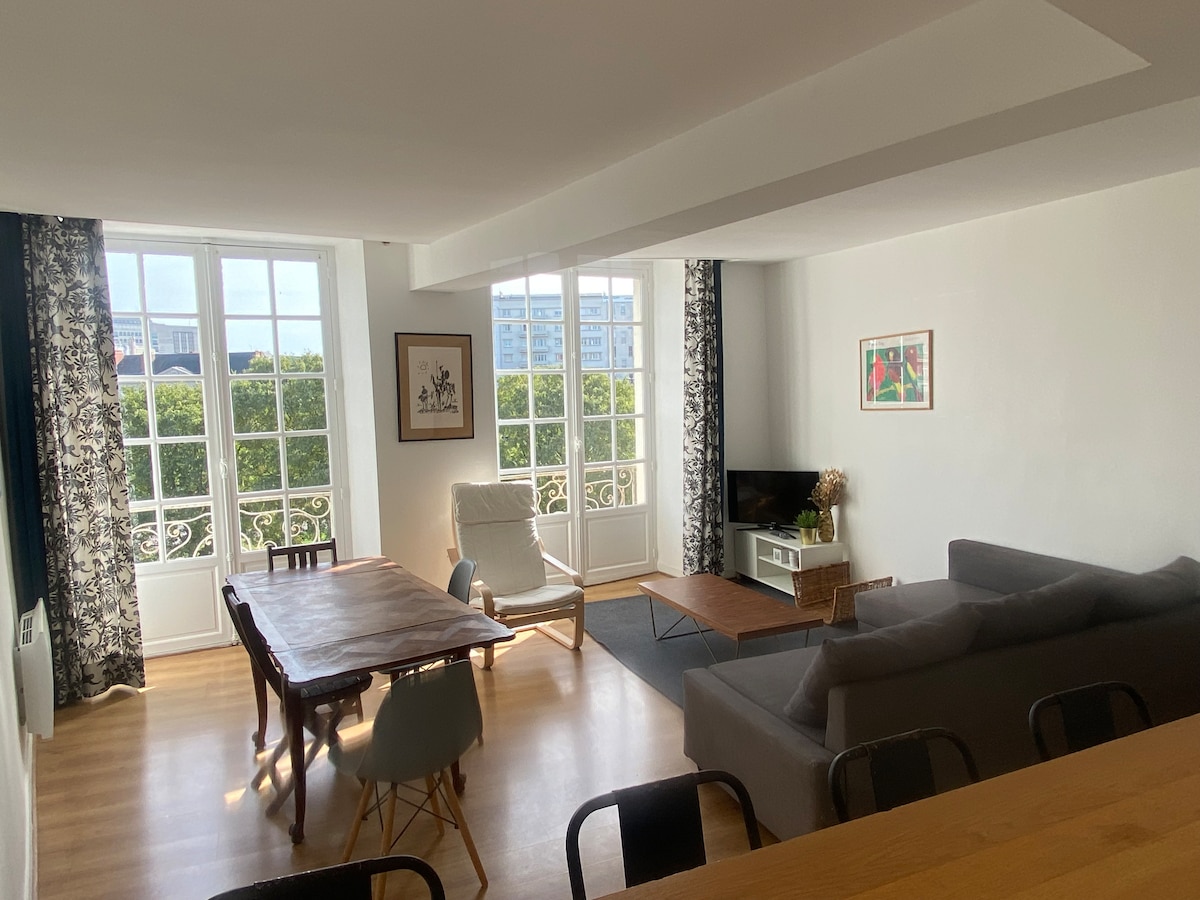 Dans un superbe hôtel particulier en coeur de ville avec une vue sur une des plus belles places de Nantes et situé à proximité de sites prestigieux comme le Musée d'art et le Château des ducs, venez découvrir cet appartement de 180 m2 à la décoration raffinée, historique et luxueuse où chaque pièce est un voyage. L'appartement se compose de deux grands salons lumineux, deux chambres (lit king size et lit double), un boudoir (canapé lit), deux salles de bains et une cuisine équipée.