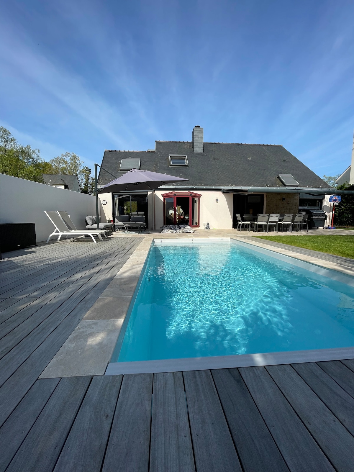 Welcome to our magnificent contemporary villa, nestled in the heart of a picturesque village and surrounded by lush nature. Our 280m² house, surrounded by a 1500m² landscaped garden with swimming pool, will seduce you with its calm environment which will invite you to relax and comfort. Enjoy unforgettable moments in this country house for a family vacation, a reunion with friends or a relaxing getaway.