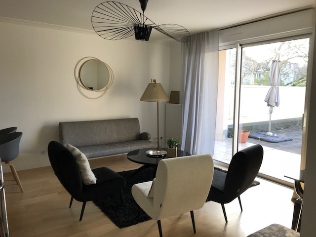 Détendez-vous dans ce logement calme et élégant. proche de l'arrêt de tram Beausejour, il permet de se rendre aux 4 coins de Nantes sans difficulté en transport ou voiture. C'est un logement de 40m2 avec 1 chambre et 1 salle de bains Vous avez à disposition dans le logement : draps, serviettes, papier toilette, gel douche, sel, poivre, café et thé. Une literie confortable dans la chambre avec un matelas de 160x200 Un canapé dépliant avec un VRAI matelas 140x190 et de 20cm d'épaisseur.