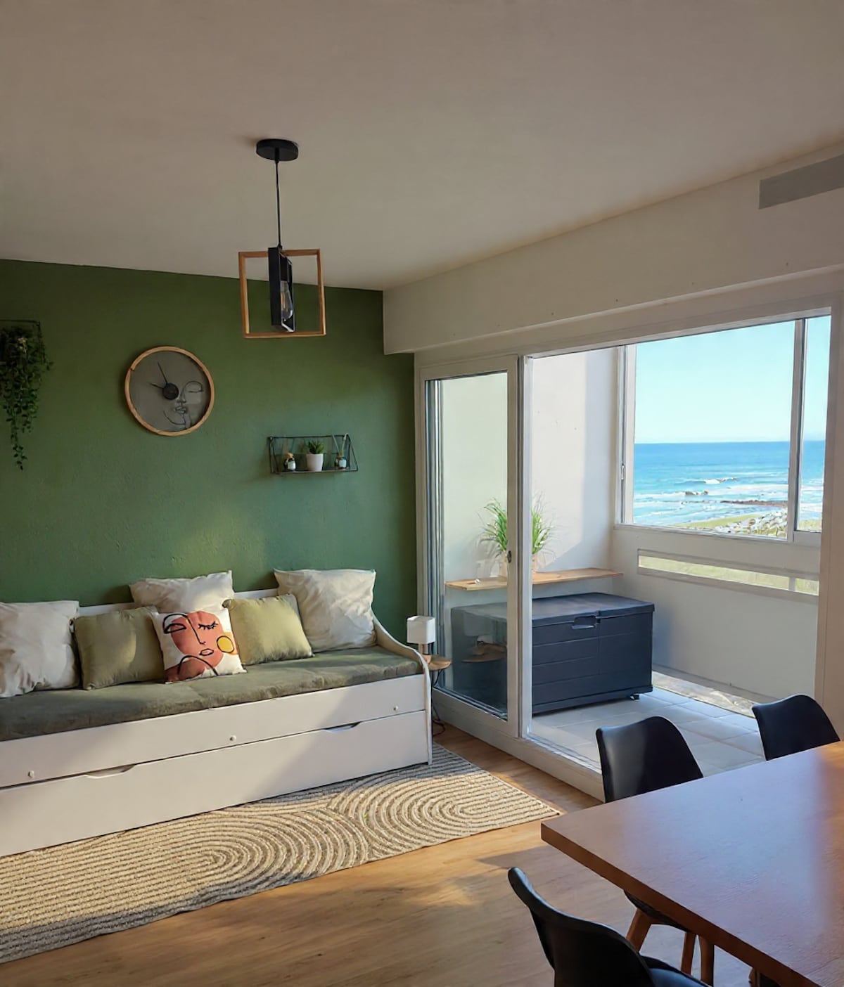 Face à la mer: profitez d'un panorama d'exception. Superbe appartement T2 (2/4 pers) rénové en 2024 - GRAND CONFORT. La plage et la dune sont au pied de l'appartement (sans route à traverser). Vue remarquable sur l'océan et l'île d'Yeu depuis l'espace repas, la loggia et même depuis le lit de votre chambre. Admirez les couchers de soleil en amoureux, en famille ou entre amis. Vous disposez de votre propre garage fermé; idéal pour votre voiture et pour ranger vélos, remorque et jeux de plage.