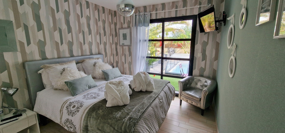 Rien n'a été laissé au hasard dans cette maison d’hôtes de charme située au calme, au fond d'une impasse et à 10min. de la plage. Une de ses chambres d'inspiration "Voyage à Bali", propose un lit Queen size, une salle d'eau ouverte sur la chambre ainsi qu'une baignoire îlot pour profiter d'un moment de détente. Dans la cuisine, vous pouvez préparer votre petit déjeuner à partir des produits "Fait Maison", puis le déguster directement dans le patio. Un jacuzzi est également à votre disposition.