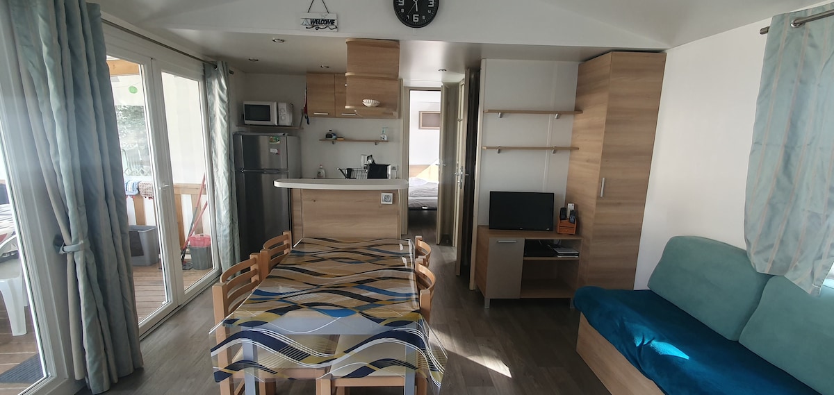 Mobil-home récent situé à proximité des piscines, air de jeux pour les enfants. Peu de passage, à l'abri des regards pour votre détente. Equipé d'un barbecue à gaz et un stationnement devant le mobil-home. /!\ Non équipé : draps, serviettes, torchons. /!\ Equipé : Alèses jetables. Pour accéder aux piscines/activités des 2 campings, les FUN PASS sont obligatoires, ils sont à votre charge, c'est sans obligation d'achat. Les tarifs FUN PASS sont dans l'annonce. Tarif réduit à partir de 7 nuits