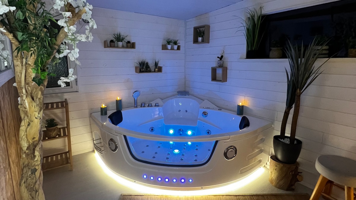 Offrez-vous une parenthèse romantique dans notre lodge Suite & Spa, parfait pour deux. Avec ses 26 m², il offre une ambiance cosy : cuisine équipée (dont machine à café Nespresso, bouilloire, grille-pain, micro-ondes, plaques de cuisson), coin salon et chambre avec lit 160 cm et salle d’eau attenante. Détendez-vous sur la terrasse avec spa chauffé à 36 °C, chiliennes et fauteuil suspendu. Climatisation, TV, Wi-Fi, draps et serviettes inclus. Ménage 60 €. Animaux non admis. Parking sur place.