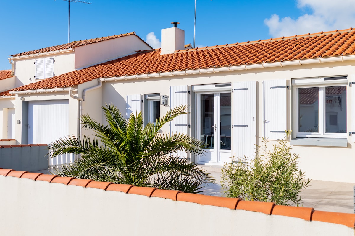 Située au cœur du village de Barbâtre sur l'ile de Noirmoutier, cette charmante maison vous mènera tout droit à la plage à 200m, au bout du chemin. Celle-ci se trouve également en plein centre proche des commerces. La Brigantine charmante maison de 68 m2 comporte deux chambres, pourvues de lits doubles, ainsi qu’une troisième chambre avec un lit superposé. Les draps et les serviettes sont INCLUS La terrasse sans vis-à-vis, comporte un barbecue ,des chiliennes et un salon de jardin. Wifi fibre/TV