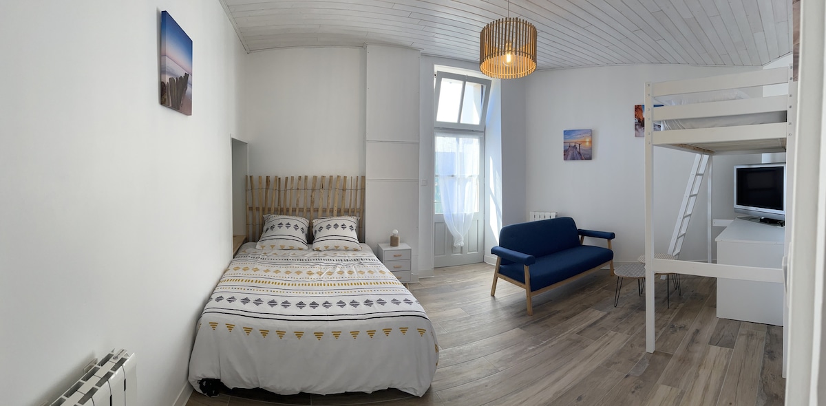 Venez séjourner dans notre joli studio atypique à Saint Jean de Monts, idéalement situé avec accès direct à la grande plage des demoiselles et rue piétonne. A proximité de toutes commodités , supérette, pharmacie bar, restaurants, casino.. vous pourrez tout faire à pieds. Profitez de belles balades en vélo en bord de plage ou à travers la forêt de pins aménagée de piste cyclables. Idéal pour un séjour en couple ou en famille/amis... La Vendée vous attends!