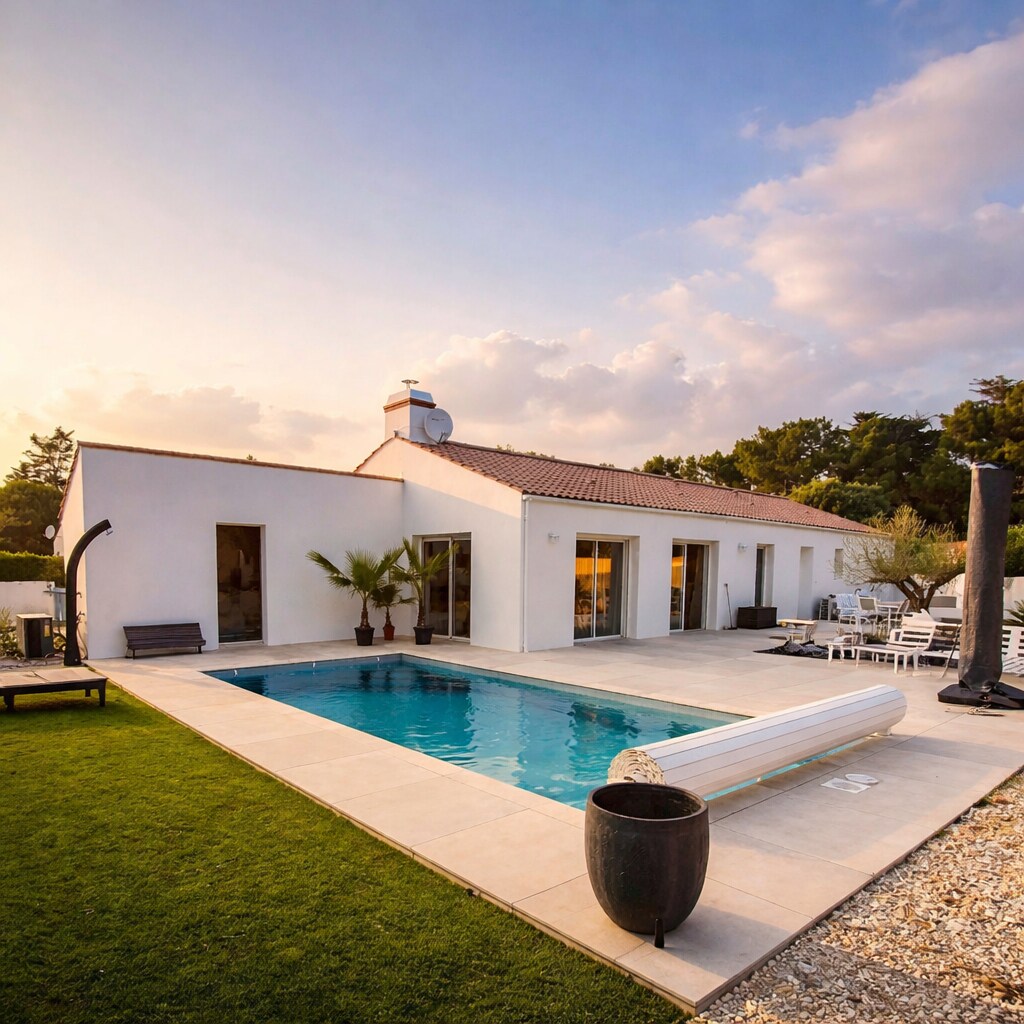 Villa de plain pied classée 4 ⭐️ pour 6personnes - 4 pièces - 3 chambres - 97 m² Piscine privée chauffée avec abri coulissant -3 Télévisions - place de parking clos et sécurisé en extérieur par un portail motorisé avec digicode et visiophone - Lave vaisselle . . . Cette villa climatisée , située à Saint-Jean-de-Monts, est idéale pour 6 personnes. Vous aurez à votre disposition une piscine privée couverte et chauffée du 07 avril au 1 octobre, un jardin clos et une connexion WiFi.