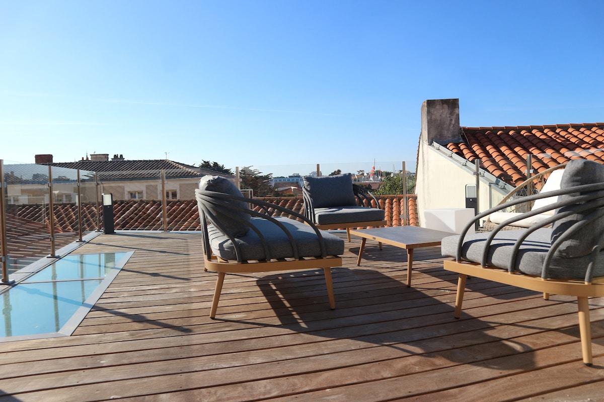 Bienvenue dans notre appartement "les horizons" avec une vue rare et panoramique sur l'océan. Classé meublé de tourisme 3 étoiles et entièrement refait à neuf courant 2022, il est situé au pied de la plage, sur le remblai piéton de Saint Gilles Croix de Vie (pas de circulation de voiture, il n'y a que vous et la mer 🙂). Une place de parking privée est à votre disposition. Vous beneficierez également des services de notre conciergerie pour préparer et profiter au mieux de votre séjour.