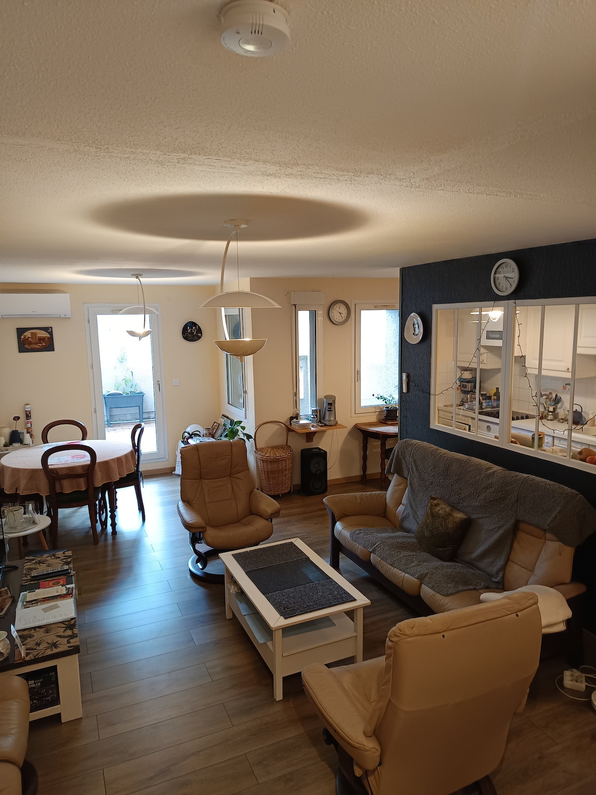 Bienvenue dans cette maison élégante, entièrement rénovée en 2023. Elle comprend 3 chambres : 1 au rez-de-chaussée avec lit 160/200 et accès direct au patio 1 à l’étage avec lit 140/190 1 en enfilade avec 2 lits 90/190 (transformables en 180/190 sur demande) 2 salles de bains (1 à l’étage, 1 au rez-de-chaussée), une cuisine équipée, un patio, un garage, et un WC séparé. Un espace lumineux et confortable, parfait pour un séjour agréable.