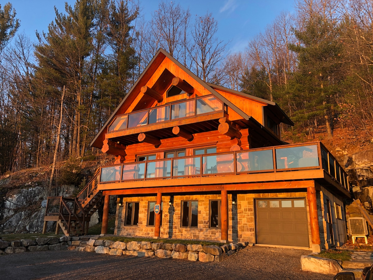 Quality and comfort close to nature. Magnificent large Scandinavian log cabin with a view on Lake Achigan, of the largest lakes in the Laurentide. The cottage has a luxurious spa, solar shower, firepit, BBQ, that absolute tranquility and intimacy.
