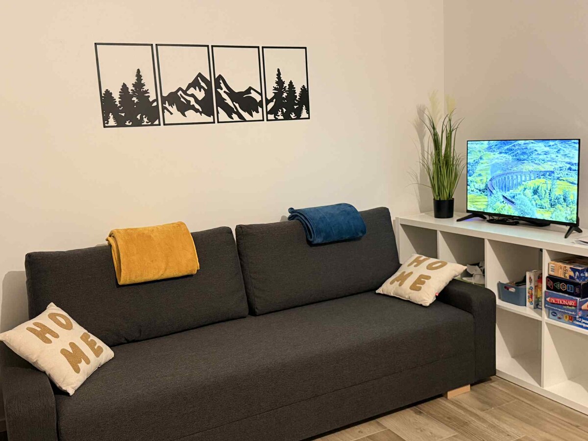 Profitez d'un studio 4 couchages en bord de piste au calme au milieu de la verdure à 5 minutes à pied du coeur de la station du LIORAN avec place de stationnement réservée. Studio de 26 m2 lumineux et fonctionnel refait à neuf. Étage -3 en rez de piste avec vue sur la foret et les montagnes. Local sécurisé pour les vélos. Casier à ski et sèche chaussures Wifi Mycanal Netflix Primevideo Deezer