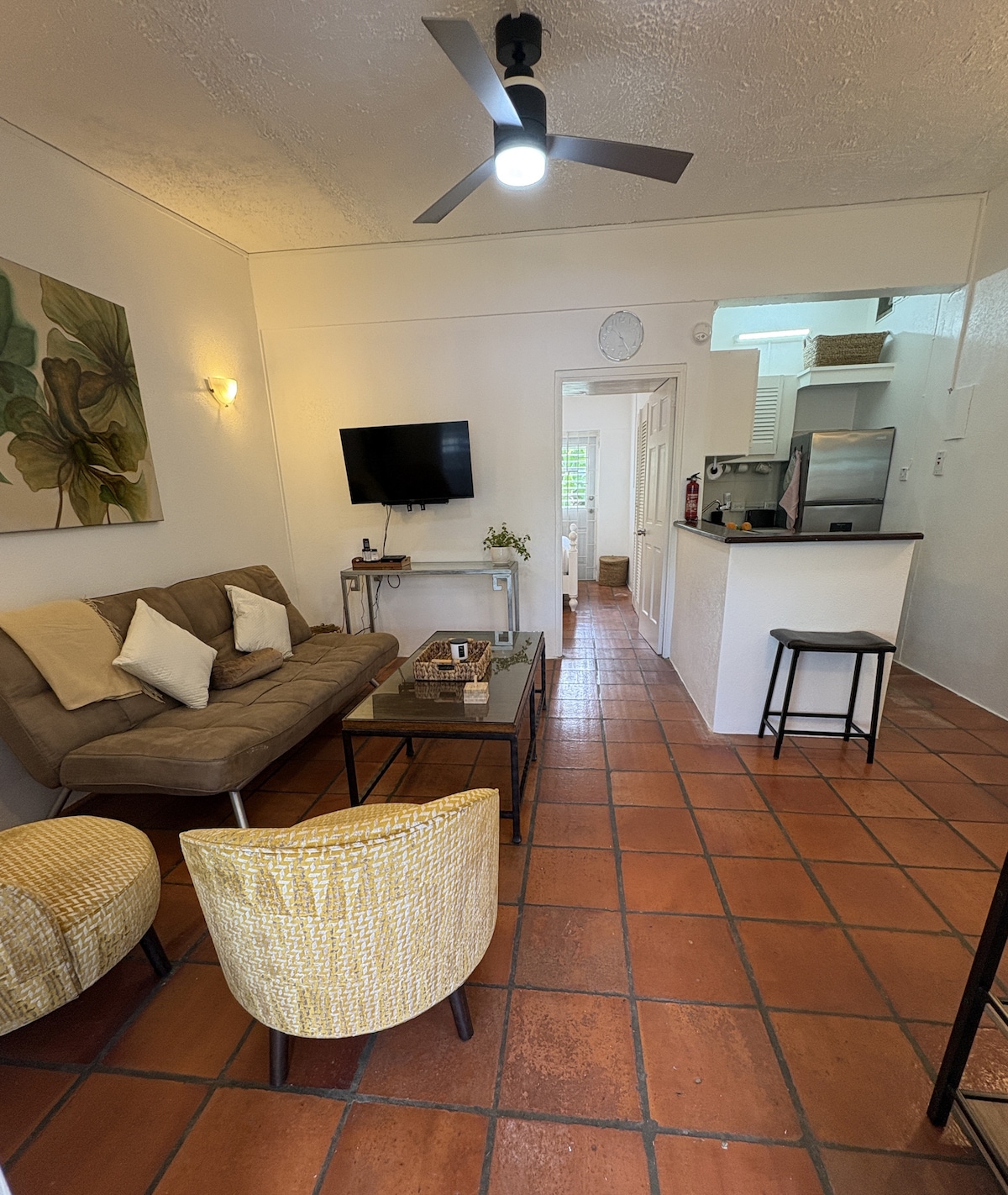 Private, cozy one-bedroom apartment nestled in a lush tropical garden square in vibrant Holetown, Barbados. Just minutes from world-class beaches, lively restaurants, shops, supermarkets, and nightlife, this centrally located apartment is perfect for couples, solo travellers, and digital nomads seeking comfort and convenience.