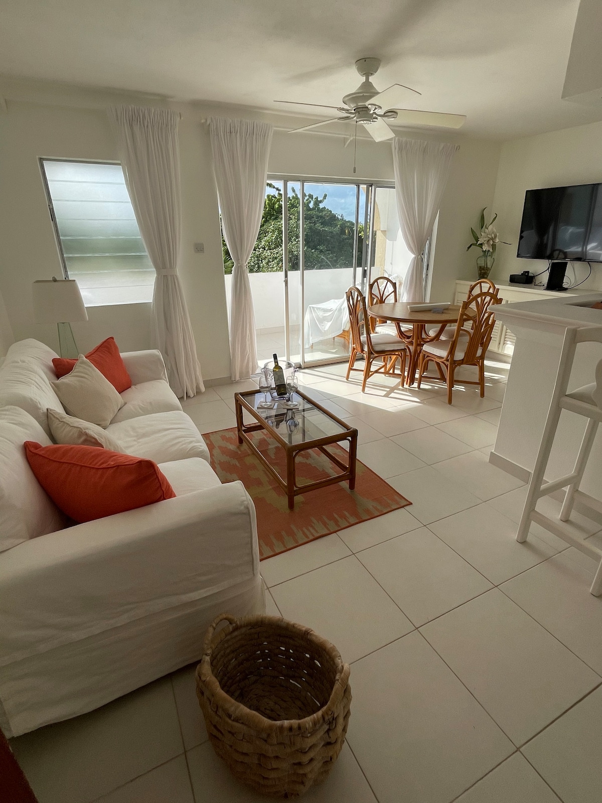 Escape to this cozy fully equipped 1 bedroom 1.5 bathroom condo in a gated community in St. James, Barbados. Enjoy pool and tennis court access, or stay in and relax in the AC, connect to the Wifi and enjoy the scenic view from the patio. Located centrally it's just a 5 minute drive from supermarkets, food options, gas stations and convenience stores. The condo is a 10 minute drive from one of Barbados' pristine beaches. Perfect stay for an island get away!