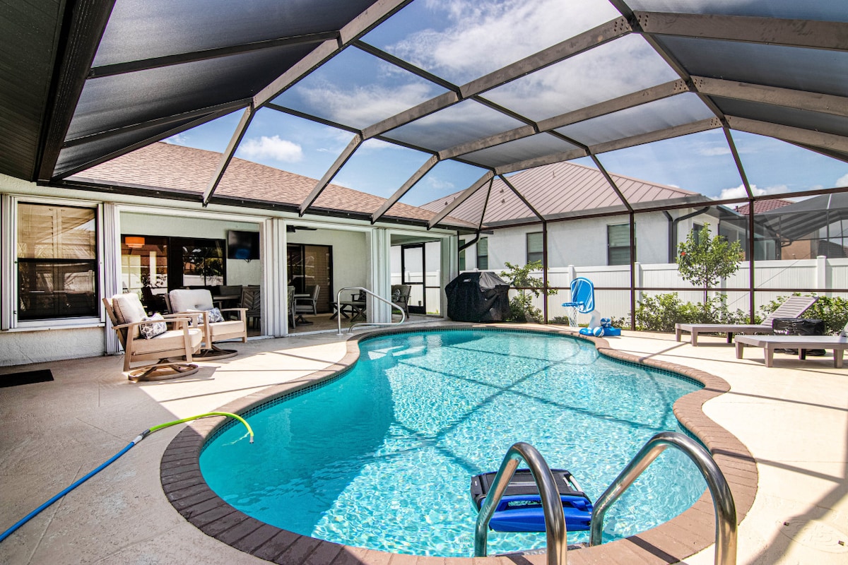 Unwind in the tranquil embrace of The Good Life Villa, your idyllic retreat nestled in the heart of Cape Coral's tropical paradise. Indulge in the soothing warmth of the private heated pool, soak up the sun's golden rays on the expansive lanai, and create lasting memories within the fully equipped, kid-friendly home. Explore Cape Coral's vibrant tapestry of white sandy beaches, fresh seafoods and exhilarating boating adventures. Embrace the true meaning of the good life at The Good Life Villa.
