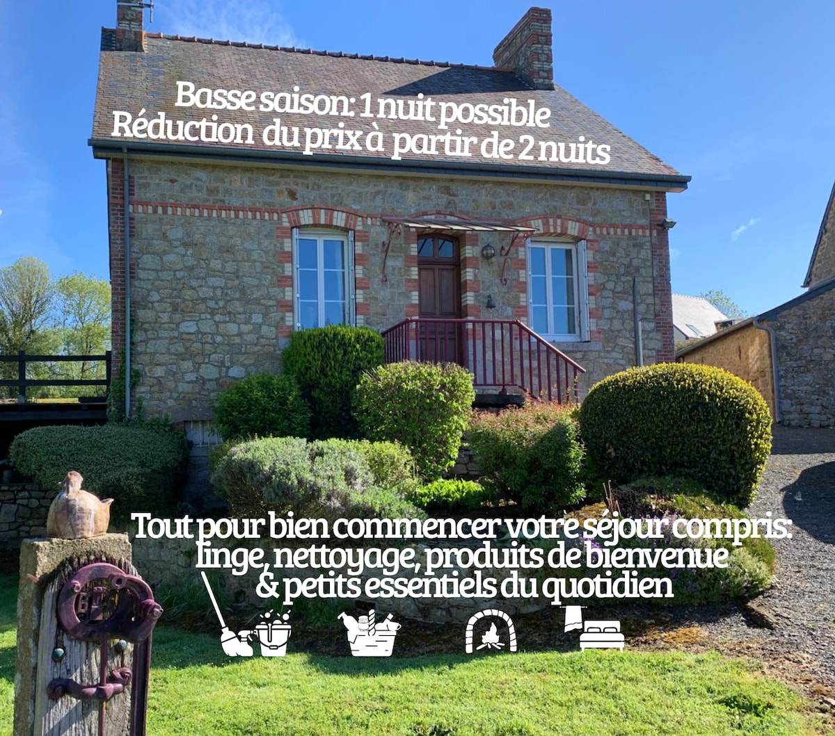 Le gîte du Mesnil est situé dans une grande longère d' un ancien corps de ferme, à 4 minutes de l' A84. Nous vous accueillons avec plaisir et une arrivée autonome tardive est possible grâce à une boîte à clés. Il n' y a pas de frais de ménage à l' unique condition de laisser le gîte dans le même état de propreté que vous l' avez trouvé en arrivant. Si vous ne respectez pas cette condition, il vous sera facturé 50€. Les animaux de compagnie ne doivent pas rester seuls enfermés dans le logement .