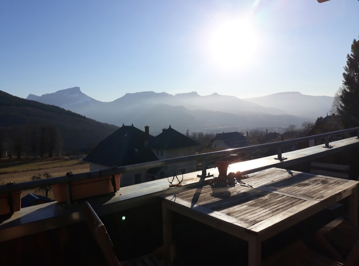 Venez vivre une parenthèse enchantée au départ des sentiers de randonnées Vous pourrez vous relaxer sur la terrasse équipée qui offre une vue imprenable sur la chaîne des Belledonnes, le Mont Granier, le massif de la Chartreuse et le bassin Chambérien. Sa situation géographique vous séduira pour vos balades : -en montagne(croix du nivolet,cascade doria…) - en ville(10 min centre historique Chambery)25 min d’Aix les Bains - des lacs(lac du Bourget,élu plus beau lac de France , Lescheraines..)