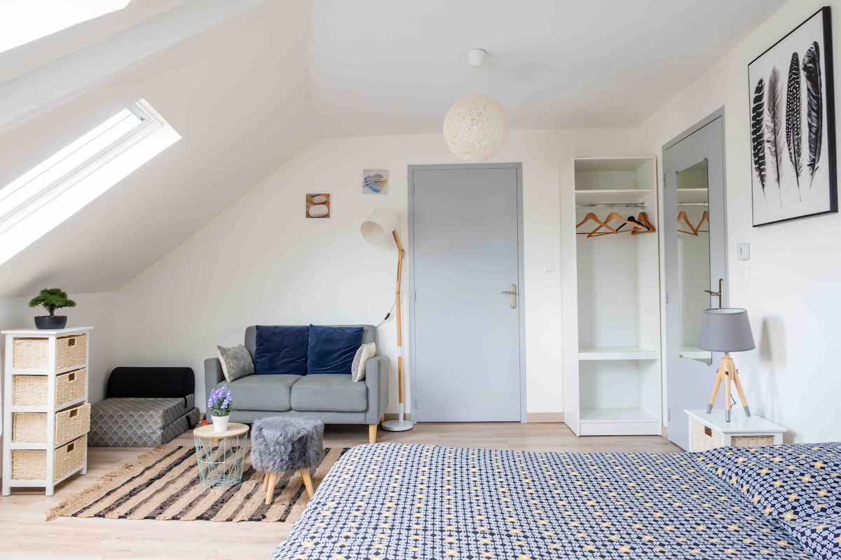 "Au Gobelet de Coëffort" Bienvenue dans notre maison-appartement de 135 m² proche de la gare nord ! Venez passer un moment de convivialité en famille ou entre amis autour du Babyfoot, du bar à Cocktail ou du Jukebox. La grande cuisine lumineuse et le spacieux salon permettent de jolis moments de partage. Notre logement s'adapte parfaitement à vos moments de travail entre collègues : Wifi, RJ45, proche gare (10 mins à pied), 3 chambres avec SDB et WC privatifs, terrasse...