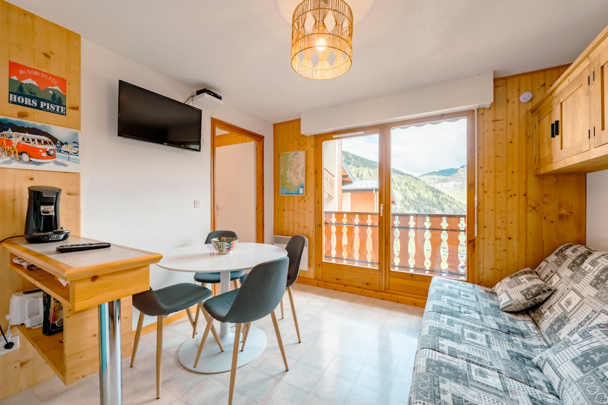 Profitez d'un nid douillet en montagne offrant une vue imprenable sur les sommets enneigés. Laissez-vous séduire par la Savoie, ses produits du terroir à proximité de la résidence et ses villages pittoresques. La chambre est aménagée avec un coin montagne délimité par une cloison en bois. La résidence est idéalement située à 50 mètres des pistes de ski, du télécabine, de l'école de ski, d'une garderie et de la patinoire. Sur place, location skis, supérette.