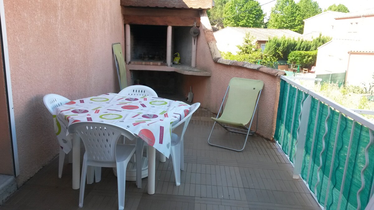 Appartement de 64m² dans maison de village traversante donnant sur vignes et gorges de l'Hérault. Proche du centre du village. Un escalier un peu raide permet d'accéder à une grande pièce à vivre ouverte sur un grand balcon/terrasse avec baie vitrée orientée est qui surplombe un jardin et une vigne, vue belle et dégagée. Coin salon (canapé convertible), coin salle à manger et cuisine ouverte. Au même niveau, chambre (lit double en 160) et salle de bain douche/wc. Résa Cybevasion & LBC possible
