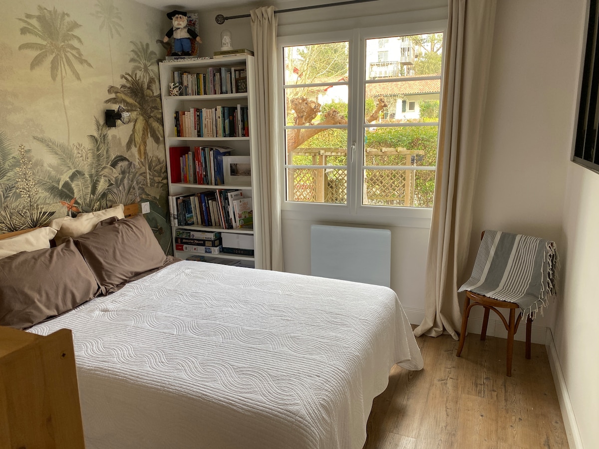 Appartement très lumineux refait neuf au 3ème étage d un immeuble face à la baie de St Jean de Luz 2 balcons Accès direct à la plage (20 mètres) sans rue à traverser pour les enfants Calme Exposition sud ouest 2 chambres indépendantes Grande cuisine salle de bain avec douche Wifi et TV Thalasso a 200m Le linge de maison (draps et serviettes) est inclus pour les séjours de 3 nuits minimum grand lit (160x190) petit lit (90x190) Parking en option Arrivée autonome possible