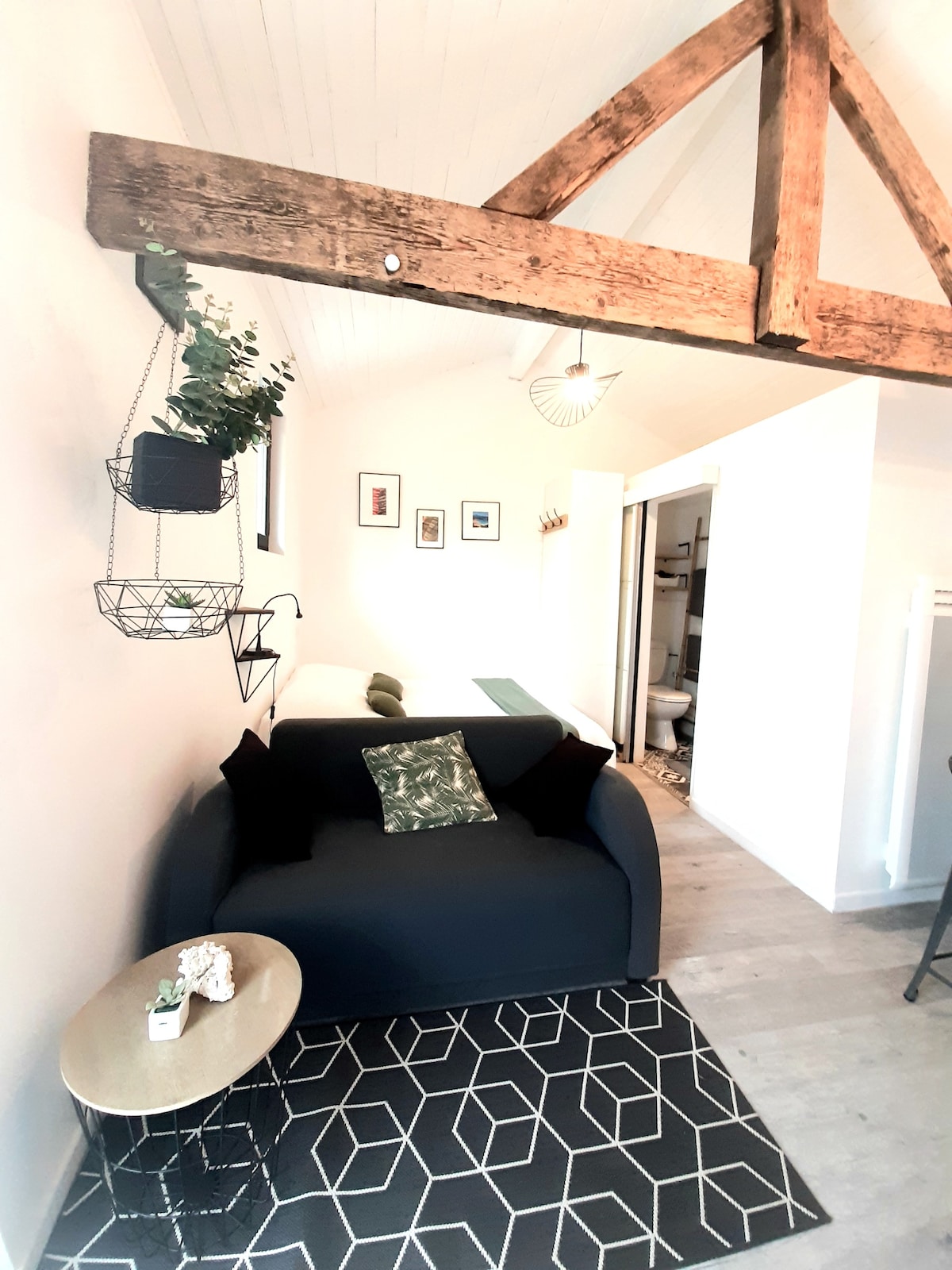 Discover Mendiko Ura, a hidden gem 50 meters from the beach, nestled between the mountains and the Atlantic Ocean in Bidart. This 35m² cozy cottage with a 14m² mezzanine offers the perfect retreat with a beautifully landscaped garden not even a minute walk from the beach. Enjoy the blend of chic and comfort designed by a passionate woodworker, ensuring a luxurious and serene stay.