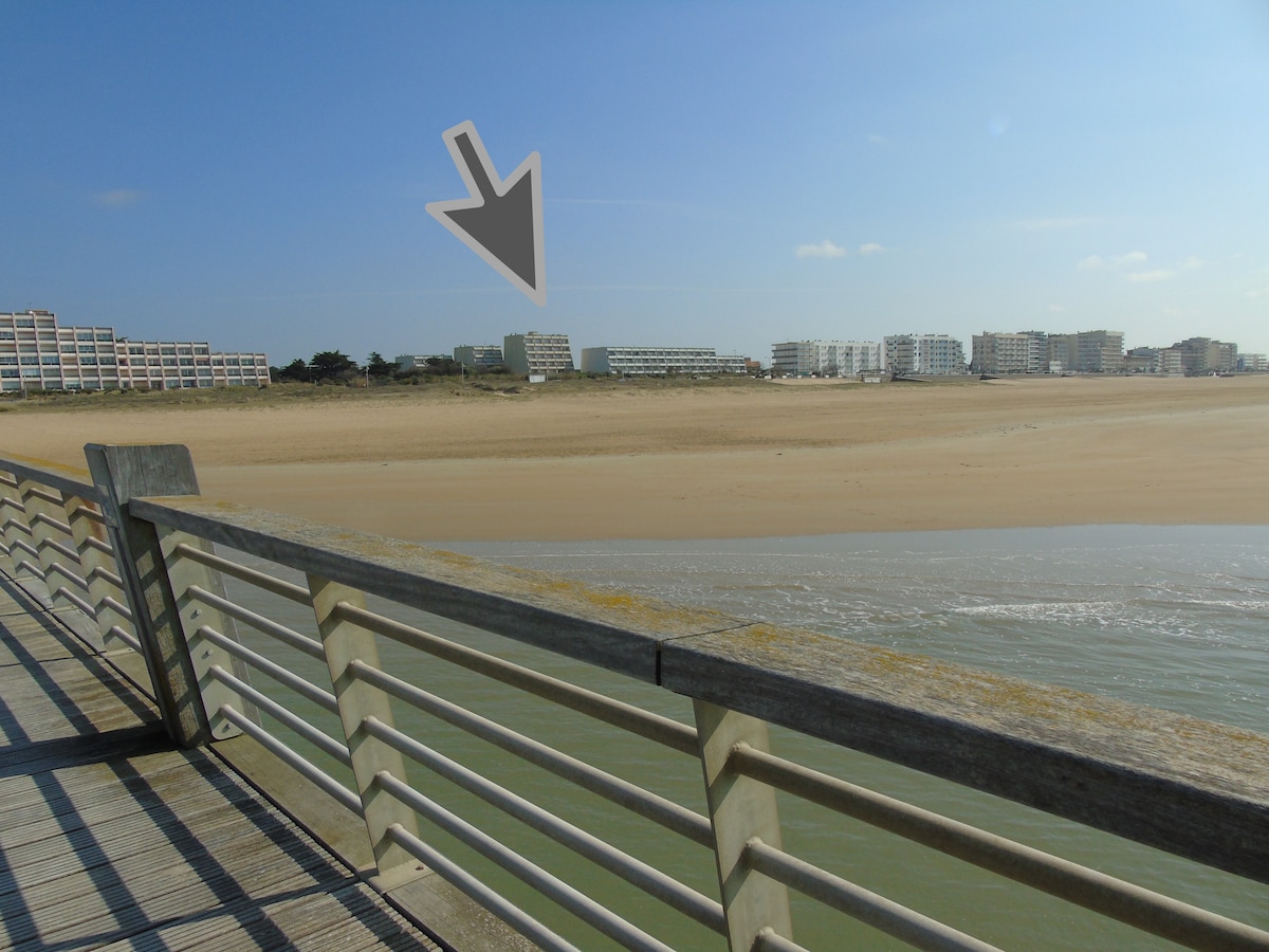 Magnifique studio face mer exposé sud ouest,avec sa vue imprenable sur la mer et l'Estacade de Saint Jean de Monts. Le studio à été totalement rénové par nos soins. Sa décoration tendance rendra votre séjour paisible et cocooning. La résidence est sécurisée . Une place de parking privative et sécurisée vous attend.