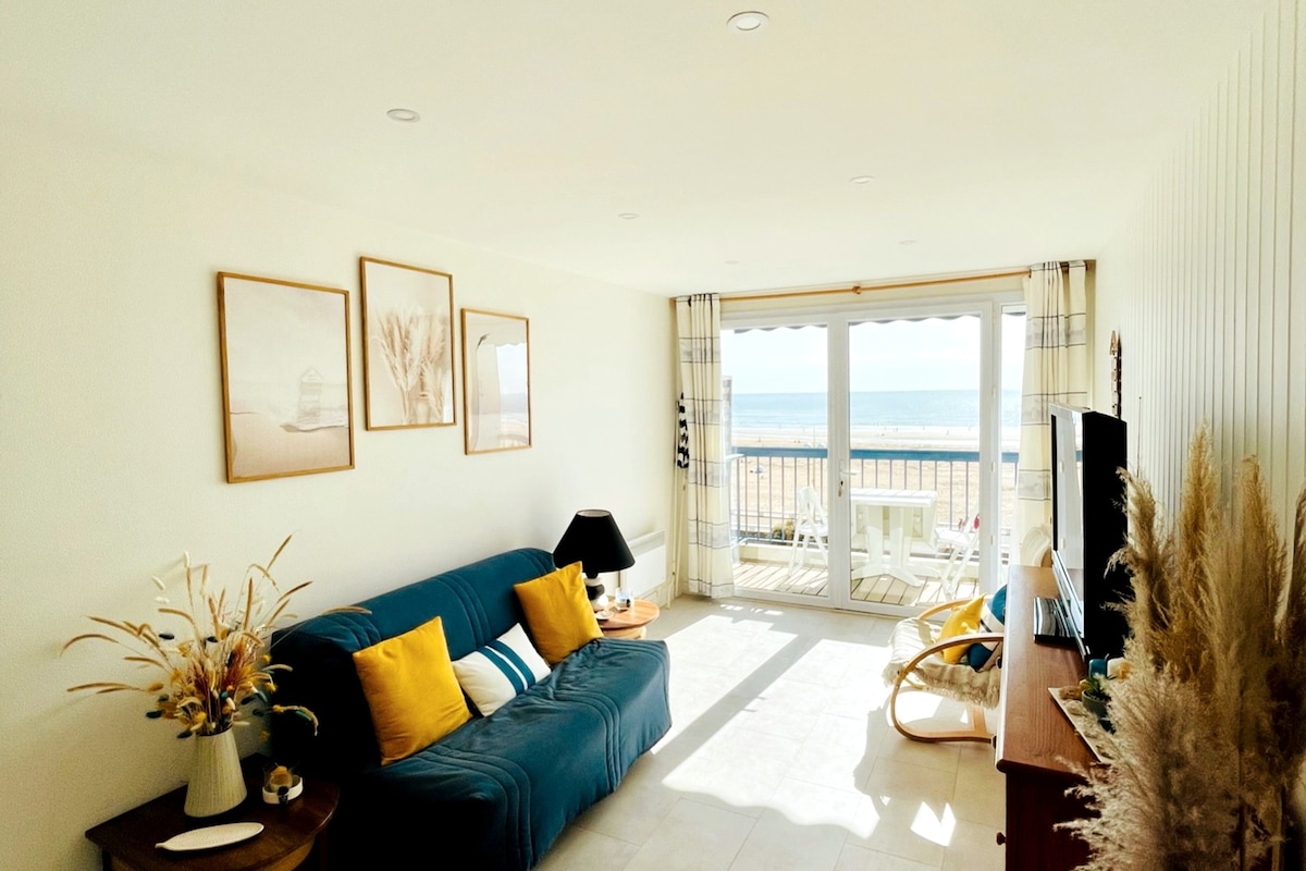 LES PLUS : Linges de lit fournis, Wifi, lave vaisselle, lave linge, serrure connectée (arrivée autonome 24/24h). Appartement de 31 m² avec terrasse de 10 m² et vue imprenable sur l’océan depuis le 3e étage. Emplacement privilégié au cœur du remblai : restaurants, bars de plage, salons de thé et snacks au pied de l’immeuble.