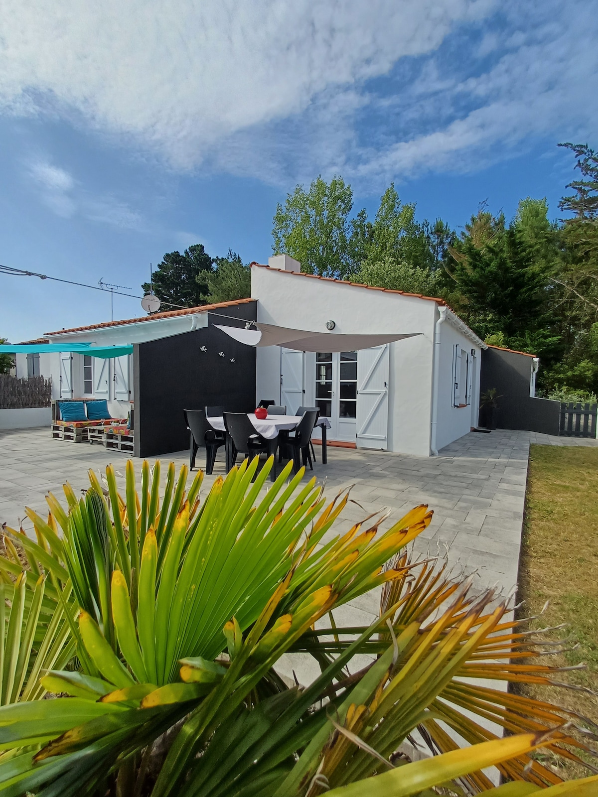 Maison en lisière de forêt et à proximité de la mer : Maison de 65 m2 entièrement rénovée en 2022 dispose d'une pièce de vie avec cuisine équipée, deux chambres avec dressing, une douche à l'italienne, un WC et un sellier. Wifi inclus. Espace extérieur entièrement clôturé, mobilier de jardin à disposition. Navette gratuite (Juillet et Août). ENVIRONNEMENT : 3 km de centre bourg de Notre Dame de Monts 1,5 km de la plage Piste cyclable à 200 mètres (forêt) et 900 mètres (marais).