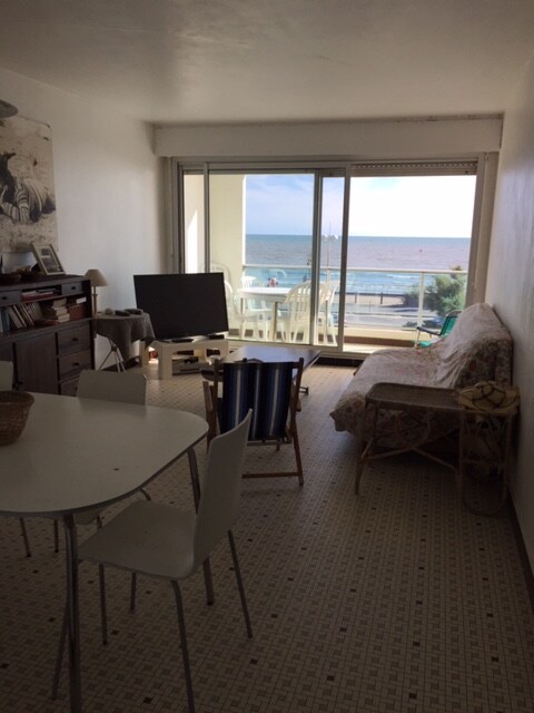Studio face mer bénéficiant d'un grand balcon exposé au sud-sud-ouest au 8 ème avec ascenseur. Cuisine équipée où vous trouverez tout ce dont vous aurez besoin... Une salle d'eau avec une douche , sèche serviette, lave-linge . Côté couchage j'ai choisi un système rapido qui permet de transformer le canapé en lit haut de gamme en quelques secondes (140 X 190 ) et un vrai Matelas de sol pour un enfant ou un adolescent ( 75 X 190) . Un petit salon 4 personnes sur le Balcon.