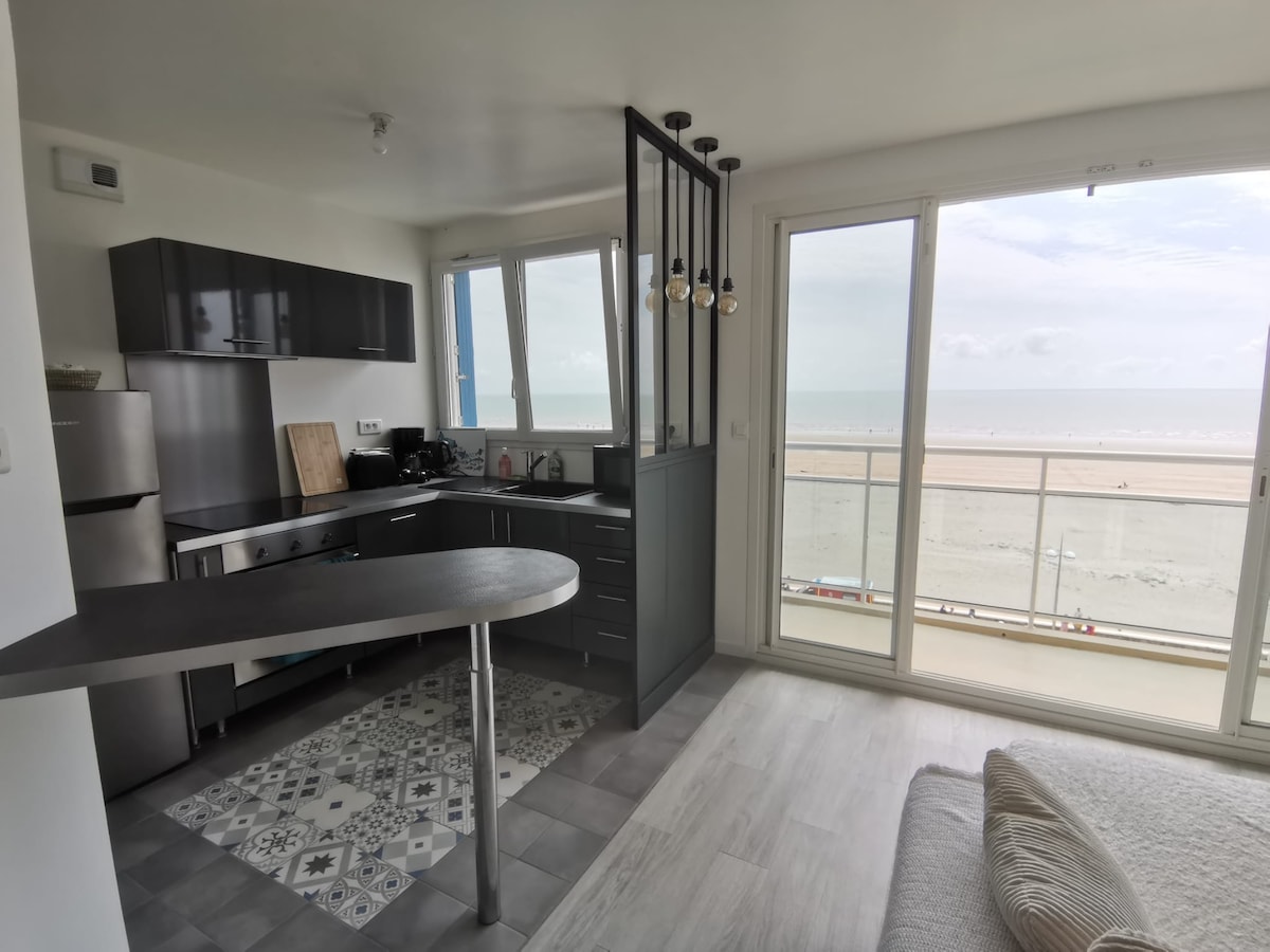 Bienvenue dans cet appartement situé sur la plage, avec vue mer à 180°, et aux couchers de soleil exceptionnels. Vous pourrez prendre vos repas comme si vous étiez sur la plage. Vous vous réveillerez avec une vue à couper le souffle. La décoration est élégante, soignée et moderne. Le confort est exceptionnel. Il est spacieux, très pratique et très bien équipé. On s'y sent super bien. Le checkin se fait de manière autonome, de jour comme de nuit 24h/24, 7 jours/7.