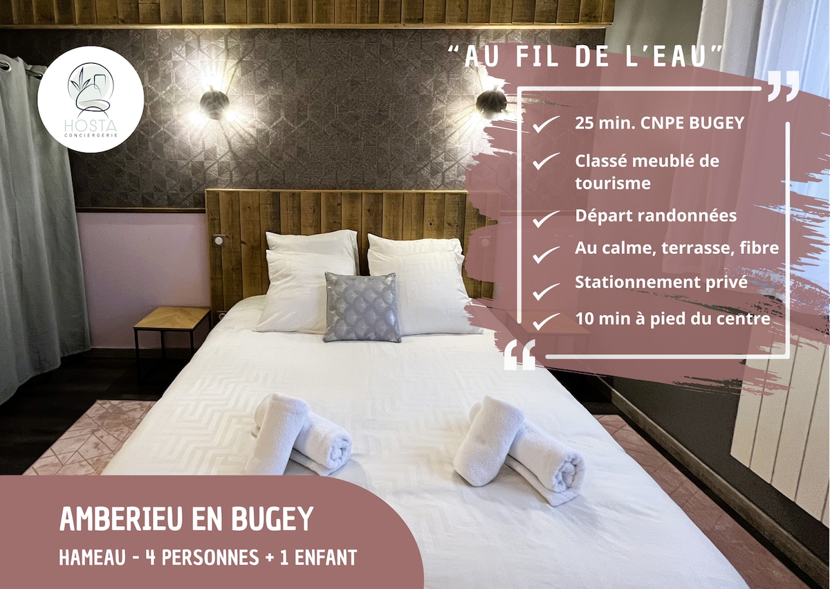 Ancienne ferme totalement rénovée dans une ambiance chaleureuse et entièrement équipée, cette maison ravira aussi bien les familles/amis en vacances que les travailleurs en déplacement (CNPE Bugey à 30min). Idéalement située, entre plaine et montagne, vous pourrez profiter de votre séjour dans un environnement calme et agréable. Bienvenue à la maison !