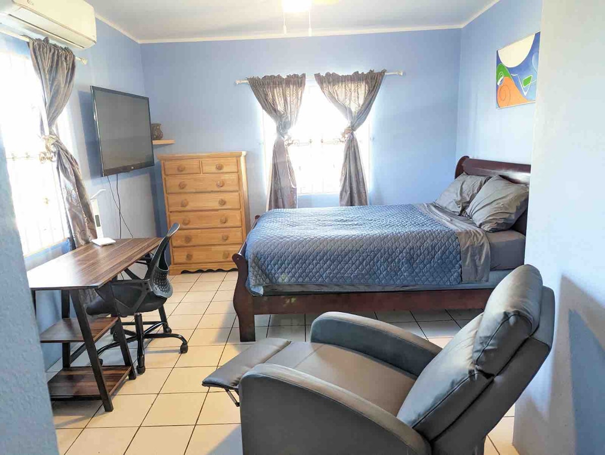 Your family will be close to everything when you stay at this centrally-located place. Located in a secure family compound, this cozy apartment is fully furnished with air conditioning in every room. Enjoy uninterrupted power supply with back-up solar power due to regular electricity outages in Antigua. Other amenities include a Firestick TV, and hot water.