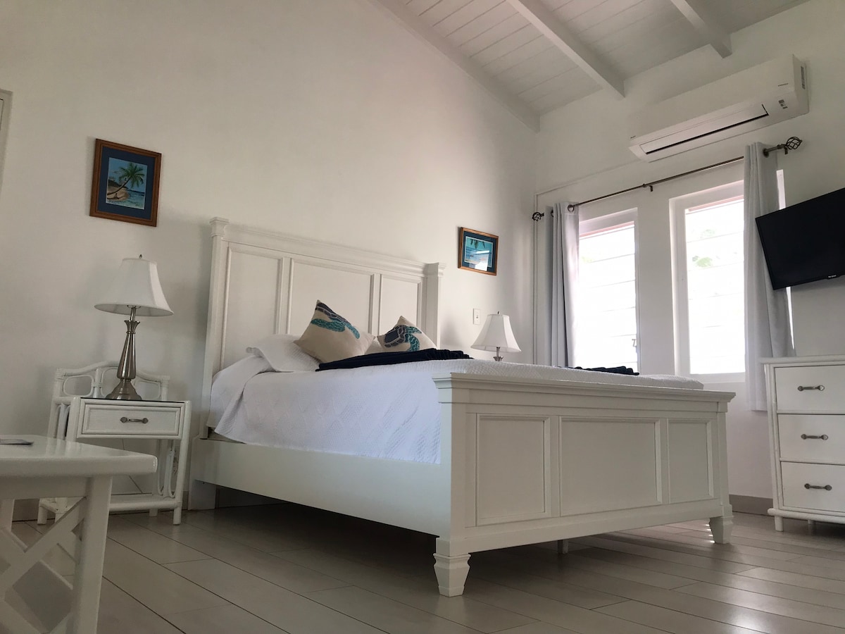 Welcome to our lovely one bedroom villa at Marina Bay. Our one bedroom villa is spacious and well equipped with everything you need for a truly relaxing island getaway. We are adjacent to an island waterway and less than 100 yards from the breathtaking Caribbean Sea, on the quiet end of Dickenson Bay. We often say it's like having our own private beach:) Several amazing restaurants and snack huts are within walking distance!
