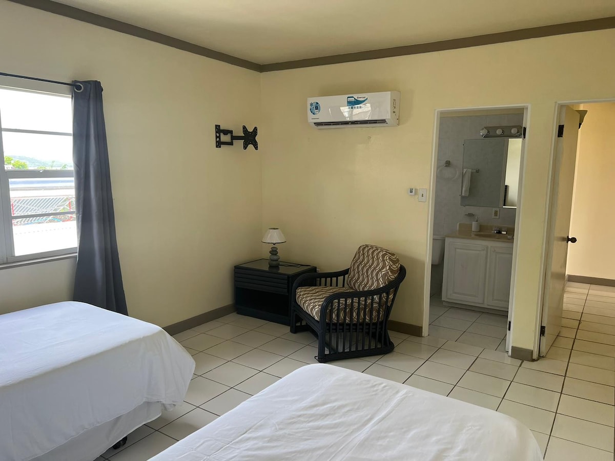 Escape to tranquility at Villa Playa 418E, a chic retreat on Jolly Harbour’s serene North Finger. This two-story gem features modern touches and offers a fully equipped kitchen, bright living area with a sectional sofa and smart TV, plus a partially covered patio perfect for dining or sunbathing. Upstairs, two welcoming bedrooms ensure restful nights, with air-conditioning for ultimate comfort. A private balcony, Wi-Fi, and on-site parking complete your ideal Caribbean getaway.