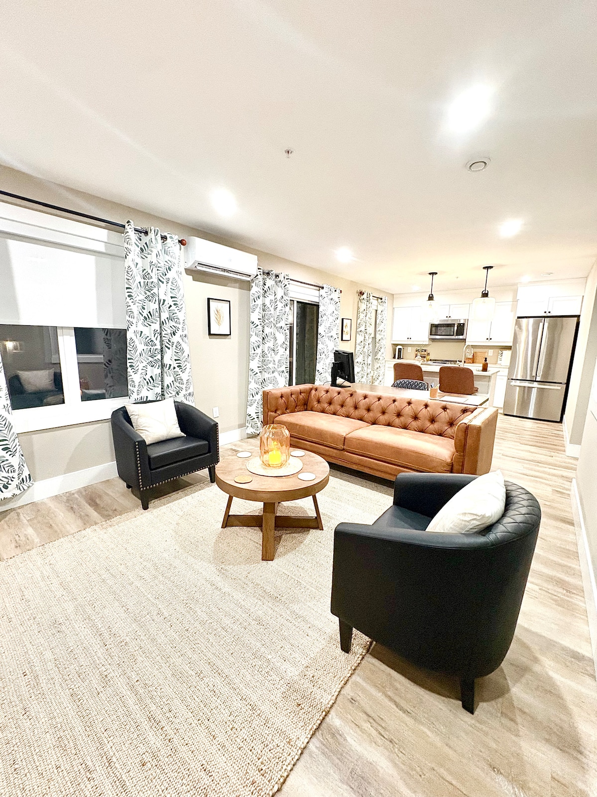 Enjoy easy access to everything from this centrally located 800 sq foot cozy apartment in Saint John. A 5 minute drive from both Reversing Falls, and historic Uptown Saint John. The unit features 2 spacious bedrooms both with queen beds. A modern eat in kitchen flows into a spacious living room with comfortable couch that features built in recliner chairs. For entertainment, the living room has a 50 inch 4K smart TV. Bathroom features a tub/shower with removable head.