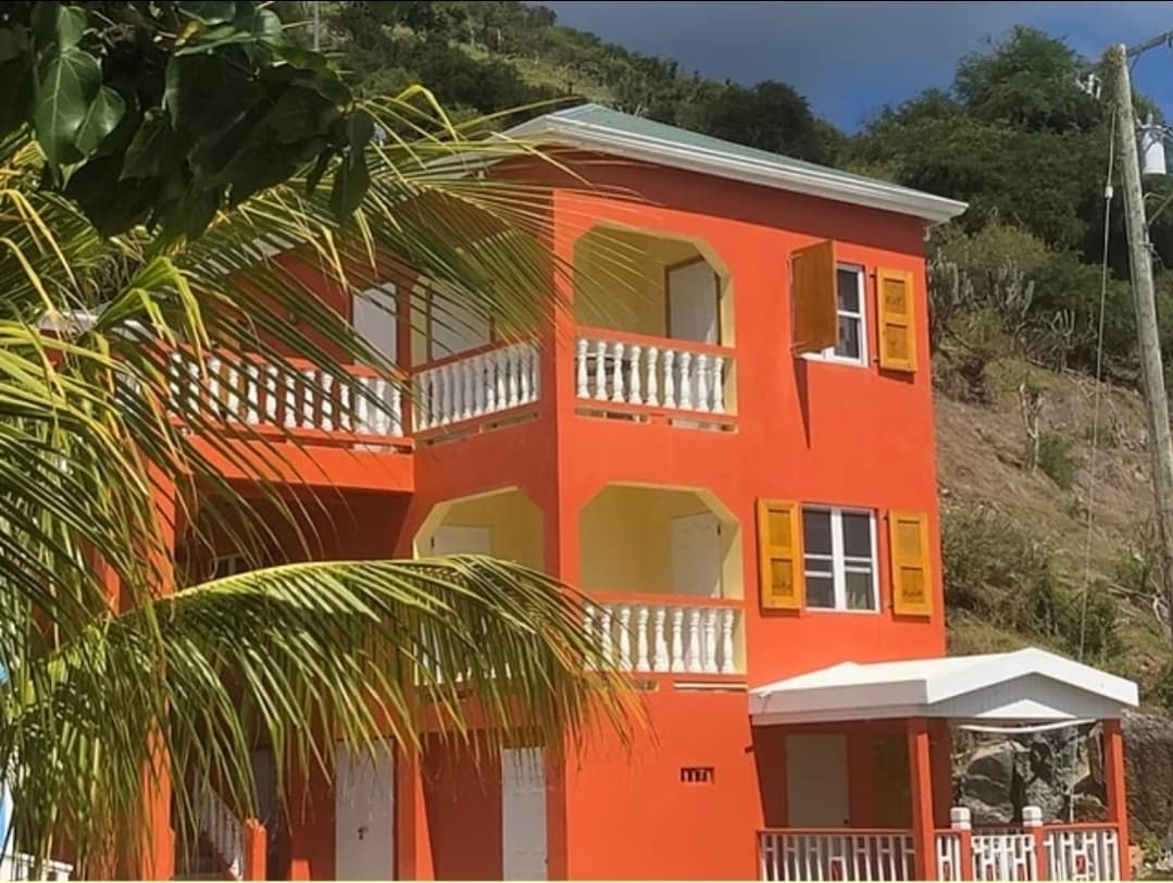 Relax with the whole family at this peaceful place to stay. Located in quaint Carrot Bay, Kurt's Bayside Oasis is nestled between the shores of Long Bay & Cane Garden Bay. A beach lover's dream & a surfer's paradise, minutes from the West End Ferry Dock, within walking distance to the white sandy beach & a 3 minute drive to the swollen surfs of Capoon's Bay. Directly across the street from the renowned D'Coal Pot Restaurant. The spacious primary bedroom opens onto a roof-top terrace.