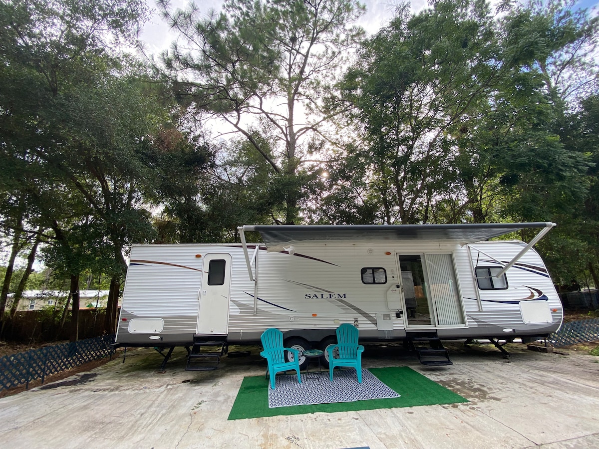 Enjoy one of Orlando’s best deals — a private space with everything you need, at a price that lets you spend more on making memories. If you manage tight spaces well, this one’s for you! My budget friendly RV has a/c, queen bed, mini fridge, microwave, and a tiny bathroom. Great for short stays having a decent place to rest at night in a very safe area. BONUS: you can go to Universal or Epic by bicycle (provided free) saving $30 on parking fees - yup, it’s an unbeatable deal!