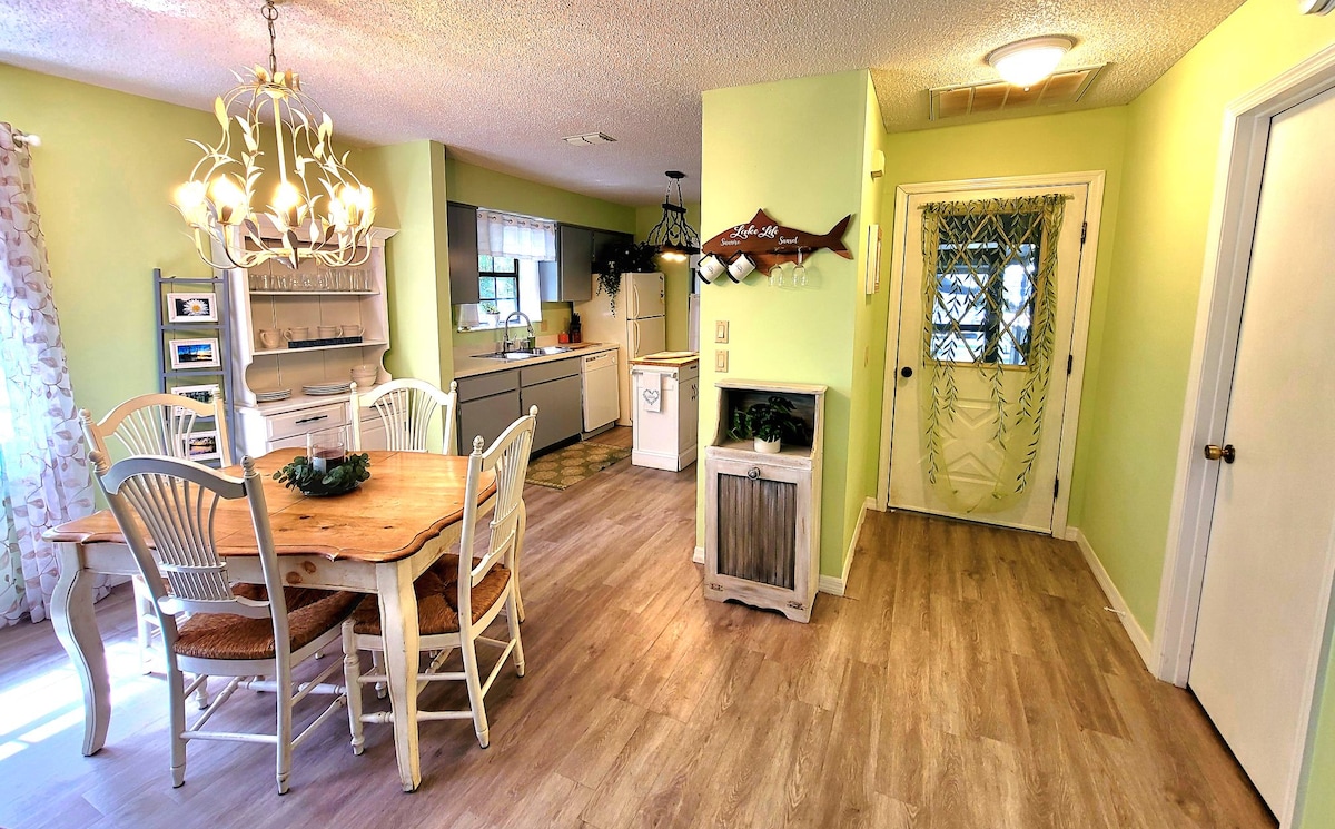 Bring your fishing gear or small boat to enjoy a fun getaway at the Captain's Cottage with a dock on Lake Stella. Key-less entry allows for self check-in and welcomes you to this comfortable clean 962 sq. ft. space with two queen size beds, one bathroom, full kitchen, florida room, and a fenced-in backyard. A paddle boat is provided. Three kayaks and 2 bicycles are also available! Or you can bring your boat and go fishing! Enjoy swimming, lovely sunsets and strolls around the beautiful lake.