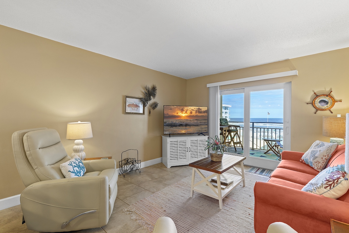 Welcome to your next Florida beach getaway! Our cozy first floor (no stairs!) condo is just a few minutes walk, via a dedicated pathway, to the no drive (no vehicle access) part of New Smyrna Beach. It’s across the street from 1 of 3 pools, shuffleboard, tennis, pickleball & clubhouse. It is a short drive to Flagler Ave., restaurants, shopping & more. The Sea Woods community offers 53-acres of old Florida style, including shaded walking and biking trails.