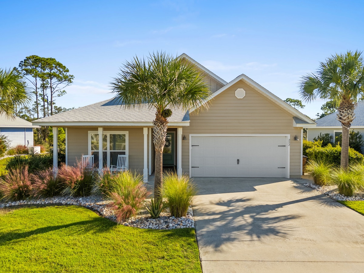 Welcome to "Gone Coastal" Enjoy all that Windmark Beach has to offer with a relaxing stay in this newer home is a 4 bedroom, 2 bath home that is one of the closest homes to the town center and main pool. It is 2 blocks from the beach, a easy 5 min walk or short bike ride to the beautiful white sand of the Gulf coast. This home features all the amenities such as bikes (including two ELECTRIC bikes), 2 paddle boards, and a 6-seater golf cart all included!