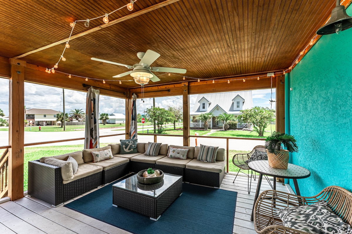 Best location in Port St. Joe! - Spikeball & cornhole - Yoga mat - Beach towels and chairs - Stocked kitchen w/ drip and k-cup machines - 2 Screened porches (200 sq ft) - Minutes to multiple beach access points - Central to cape san blas, mexico beach, and downtown PSJ - Upgraded kitchen - Smart TVs - Upstairs: 2 King Beds with en suite bathrooms - Downstairs: half bath, 1 sectional and 2 twin air mattresses for extra sleeping We prioritize your 5-star experience over anything else! :)